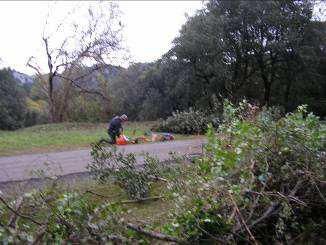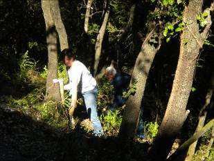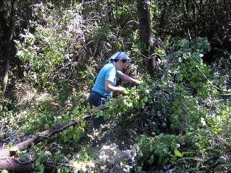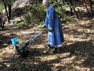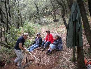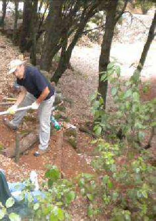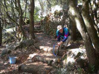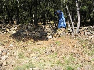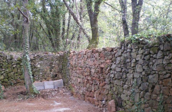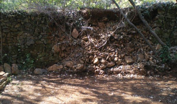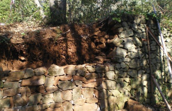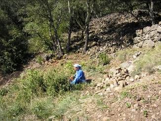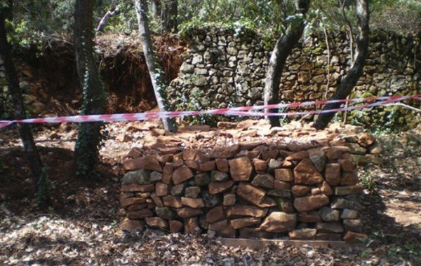 Reconstruction de murs en pierre sèches qui se sont écroulés. Ce travail demande de trier les pierres avant de commencer à reconstruire.